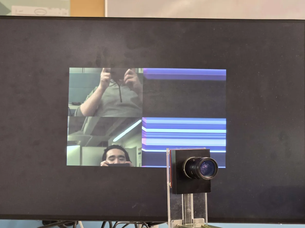 Direct Raw Data Display: Without the demosaic and color processing enabled, the system is directly displaying the raw Bayer pattern data, which appears as a grayscale or monochrome image. Each pixel only contains intensity information for a single color, but the display treats it as luminance-only data.